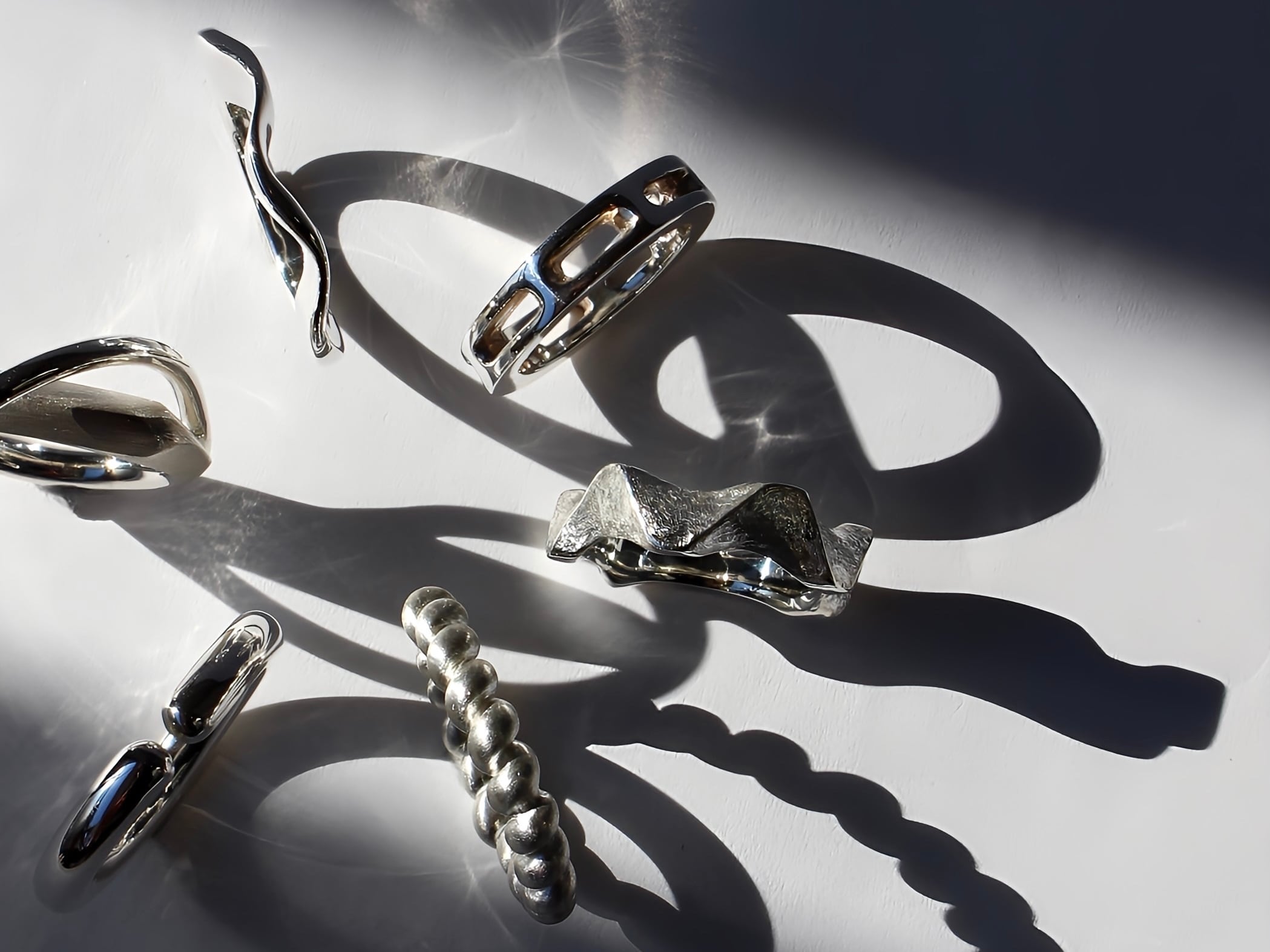無機質な曲面に反射する光と影 直線と曲線を繋ぐ面、愛らしい膨らみやシャープなラインなど視点を変える毎に表情の違いをお楽しみいただけるオブジェクトです。 Detail [素材] SV925 [規格] アーム幅 5mm程 高さ 4mm 程 指輪号数 6〜23号 上記以外のサイズを御希望の場合も御相談下さい。 0.5号サイズ刻み(半号)での制作もお承り致します。 リング中央がリングの号数位置となります。 リング表面の曲面に光が反射して美しく輝きます。 納期45日前後目安となります。 御購入時に指環号数をお知らせ下さい。 〈SHOPPING GUIDE〉 https://raza1.thebase.in/p/00004