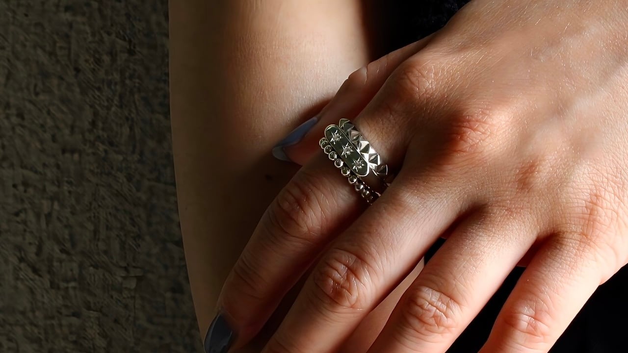磨き上げられたピラミッドスタッズ(角鋲) に光が当たるとキラキラキラと反射して煌めきます。 リング内側は裏抜き無しで滑らかな指通りです。 単品付けは勿論、重ね着けにも重宝致します。 [素材] SV925 [規格] 幅 1.85mm 程 厚み 1.6mm 程 (スタッズ部位) [号数] 1号〜30号 ジャパンカスタムサイズ(JCS規格)に基づいて製作しています。 購入時にお客様の希望される指環号様をお伝え下さい。 〈SHOPPING GUIDE〉 https://raza1.thebase.in/p/00004