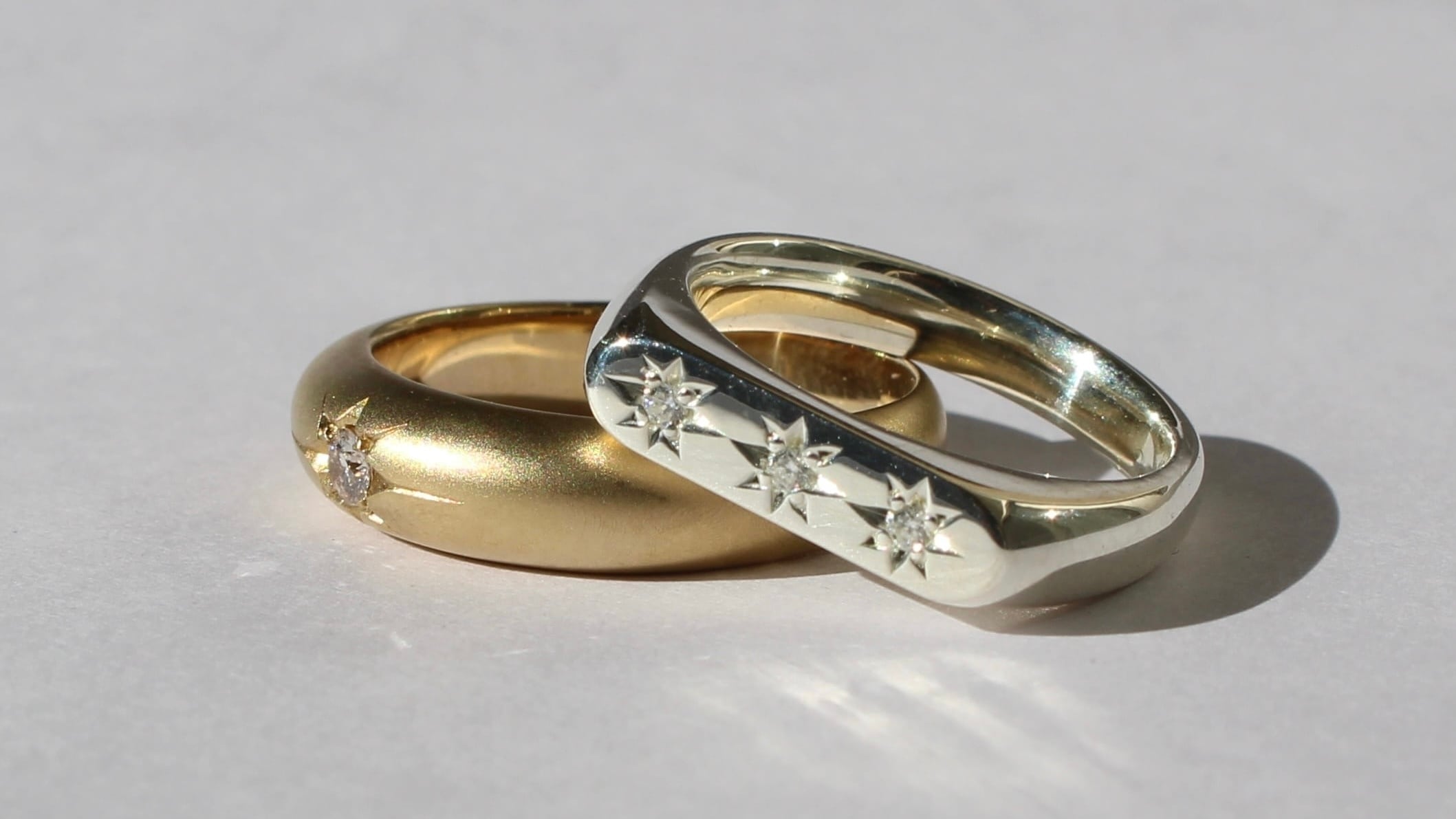星は古来から希望や夢、願いを象徴してきました。 リングに刻まれた三つの星は「調和」や「バランス」そして時間軸(過去、現在、未来)を表しています。 人生の旅路を思い返し未来への希望を持つ意味が込められています。 Since ancient times, stars have symbolized hopes, dreams, and wishes. The three stars engraved on the ring represent "harmony," "balance," and the time axis (past, present, and future). It is meant to remind us of the journey of our lives and to hope for the future. [素材] SV925 ブルーモアサナイト (ラボグロウン) 《Moissanite》 モアサナイトは輝き、強度、共にダイヤモンドに匹敵、項目によってはそれ以上の優れた数値を示し、ダイヤモンドに比べて皮脂汚れがつきにくい特性もある為デイリーユースにとても優れた人工石です。 [規格] 幅 3.5mm程 高さ 2.5mm 程 指輪号数 6〜30号 上記以外のサイズを御希望の場合も御相談下さい。 0.5号サイズ刻み(半号)での制作もお承り致します。 御購入時に指環号数をお知らせ下さい。 ※納期45日前後目安です。 〈SHOPPING GUIDE〉 https://raza1.thebase.in/p/00004