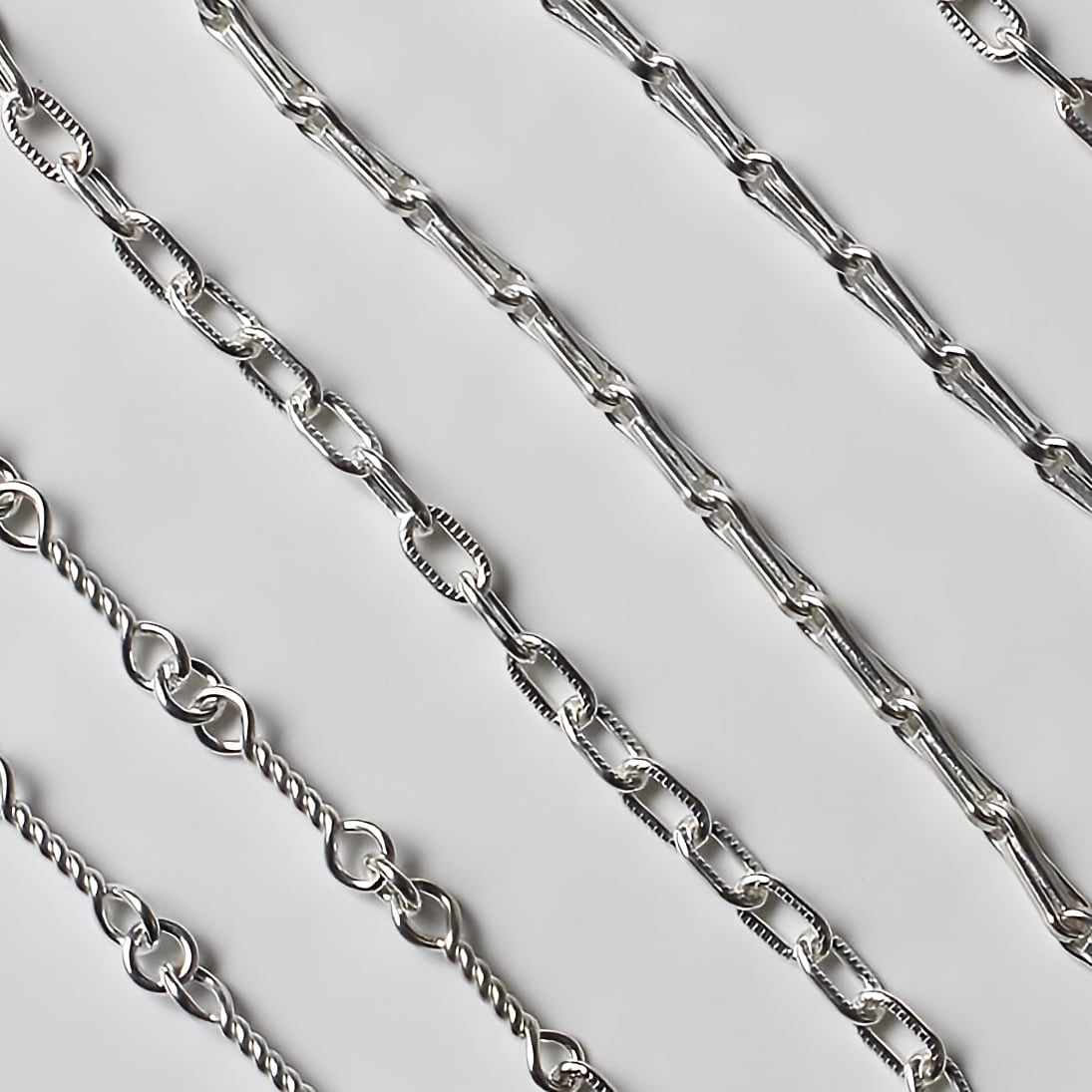 一見シルエットはシンプルですが、三種類のチェーンが一本のネックレス内で切り替わる事により普通過ぎないオリジナリティのあるテイストを表現します。