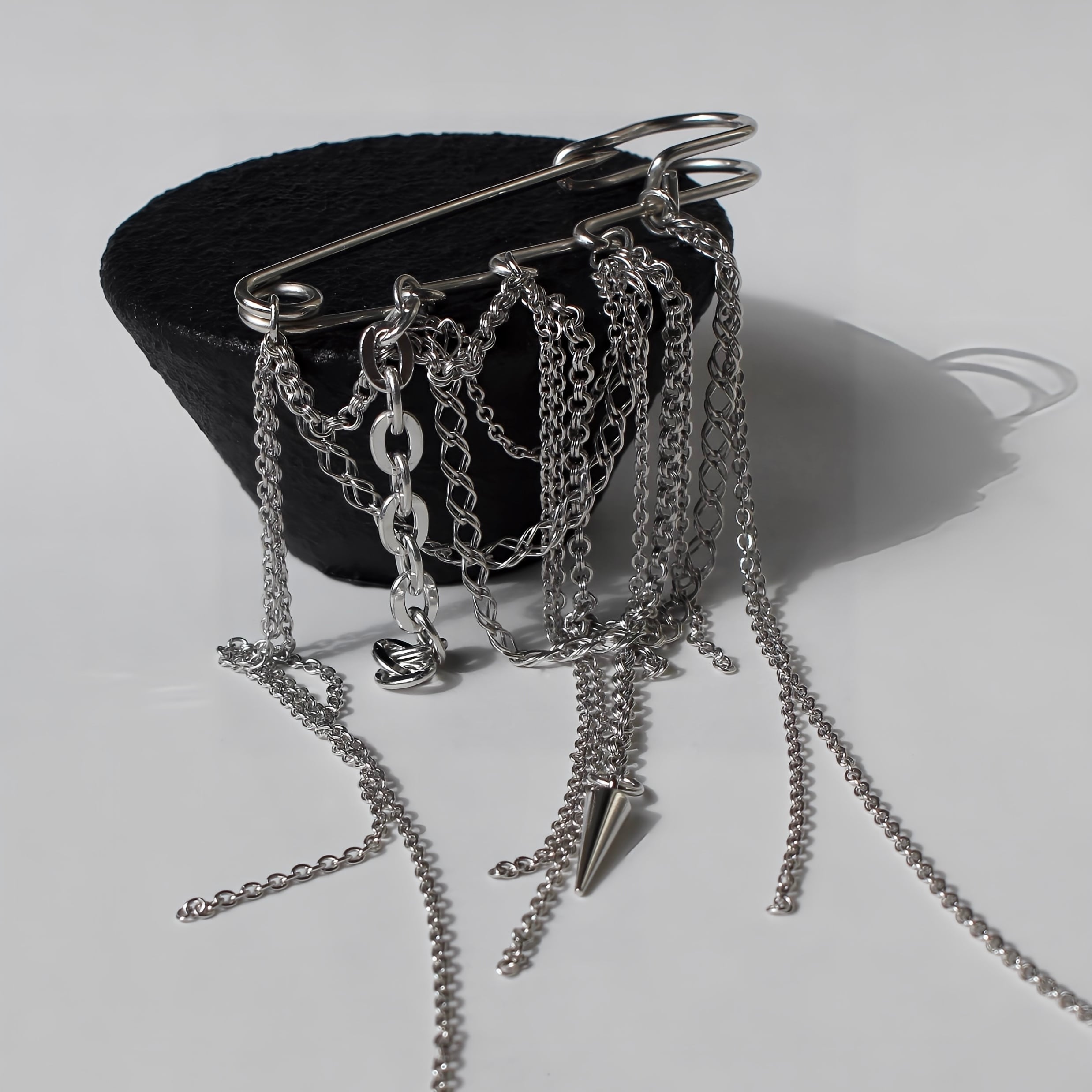 コラボアイテム初となるピンチャームは、MUROのイメージに沿って4種のチェーンとスタッズパーツをセレクト。