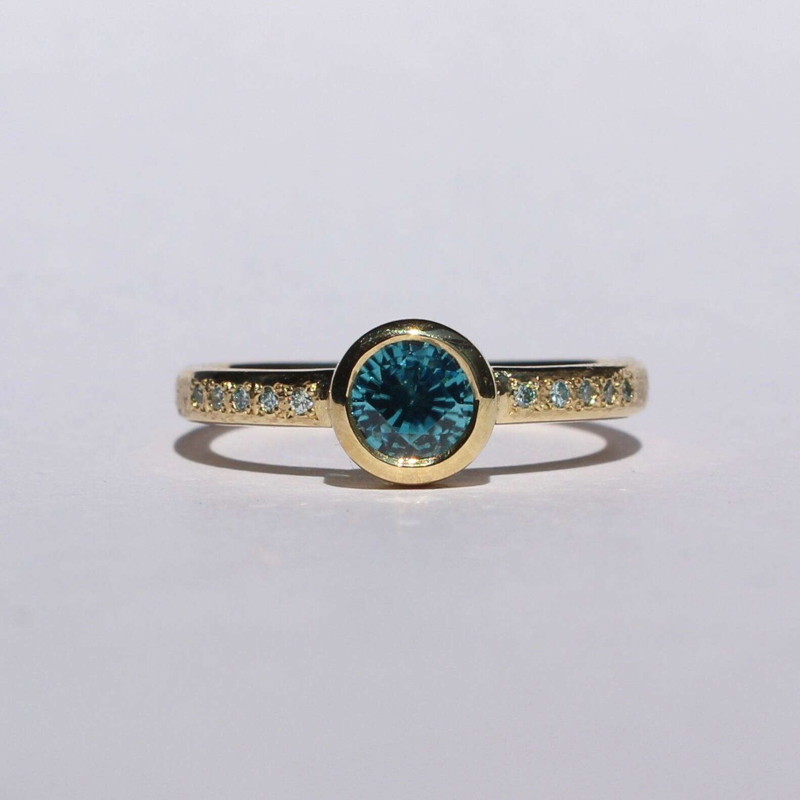 Blue zircon 5mm Ice blue diamonds / K10YG