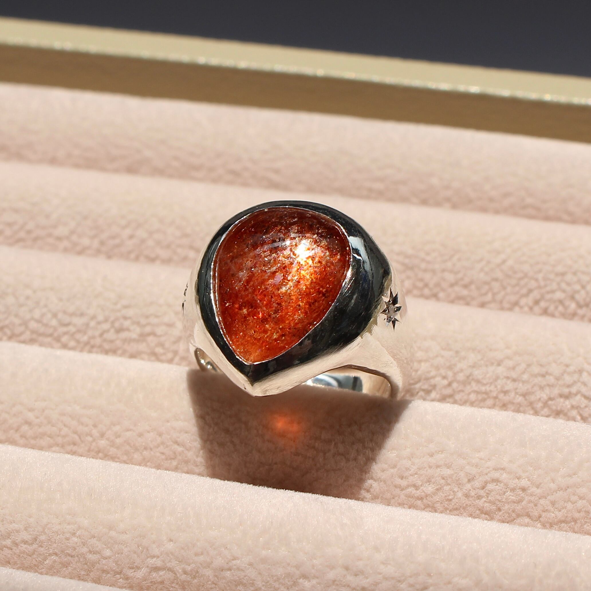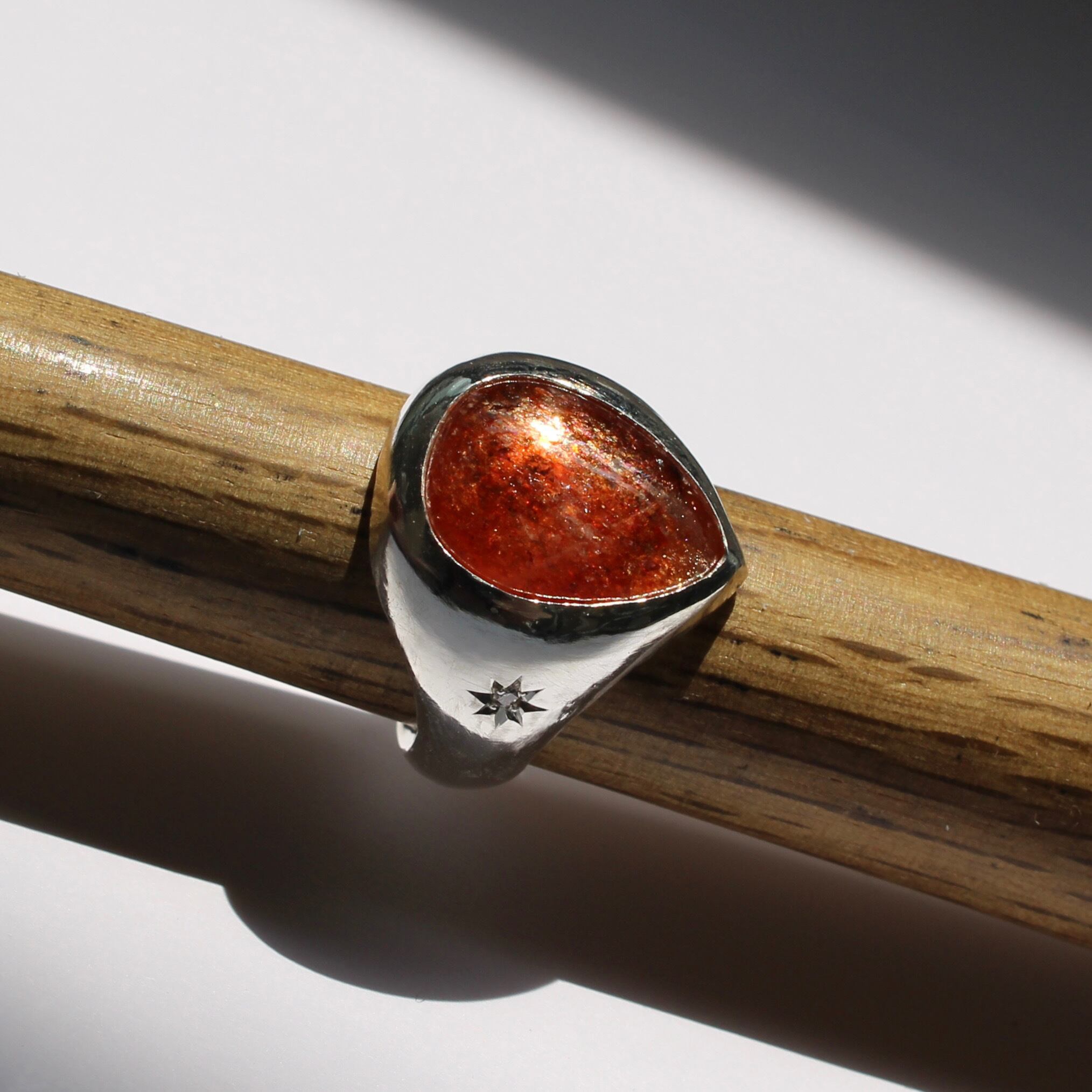 大振り石のボリューム感あるリングなので人差し指か中指に着けて頂くと指先コーデのアクセントにバランスよろしいかと思います。