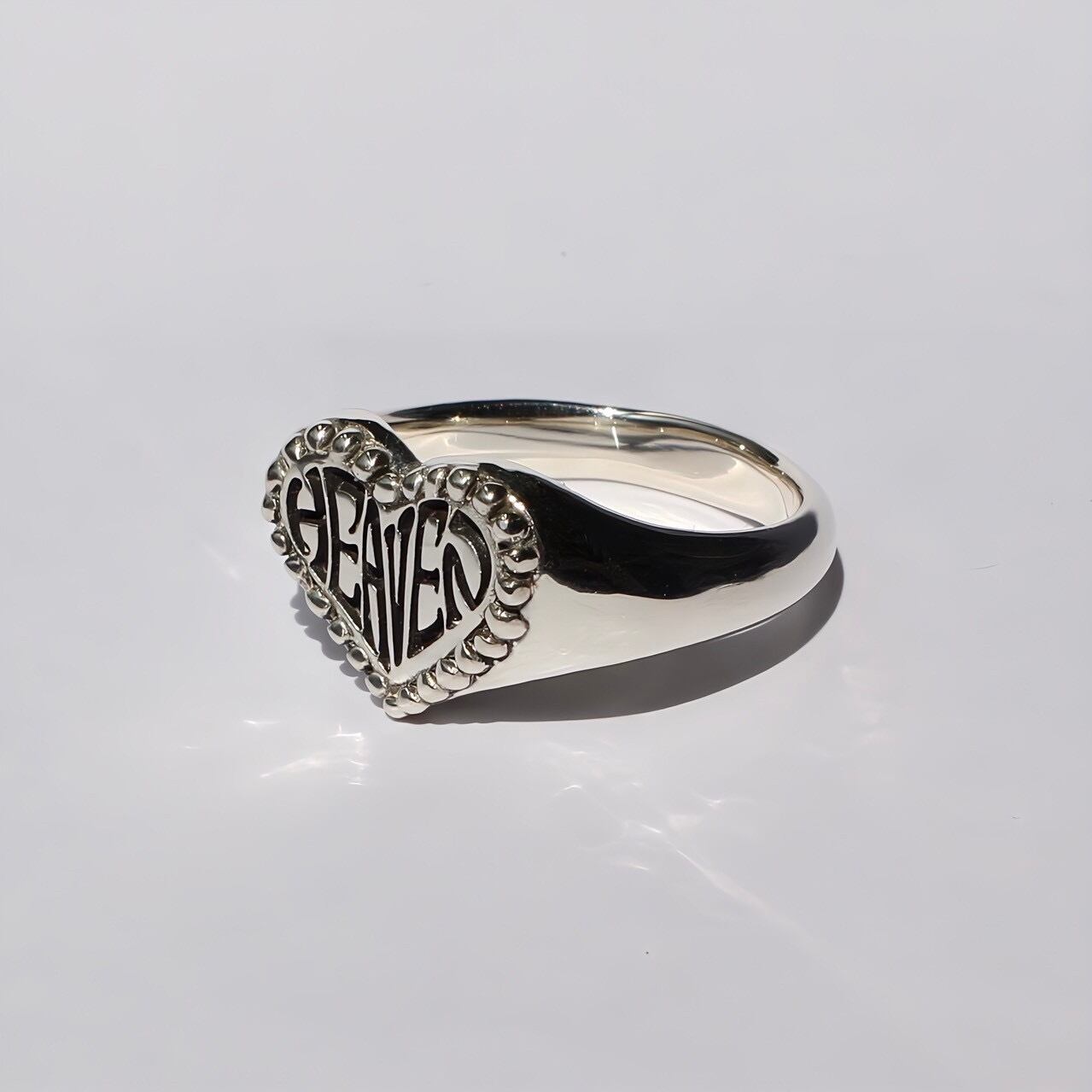 MUROのイメージに沿って原型を製作、ハート印台に刻まれた文字やそのレイアウトなどムロの拘りが詰まったリングです。